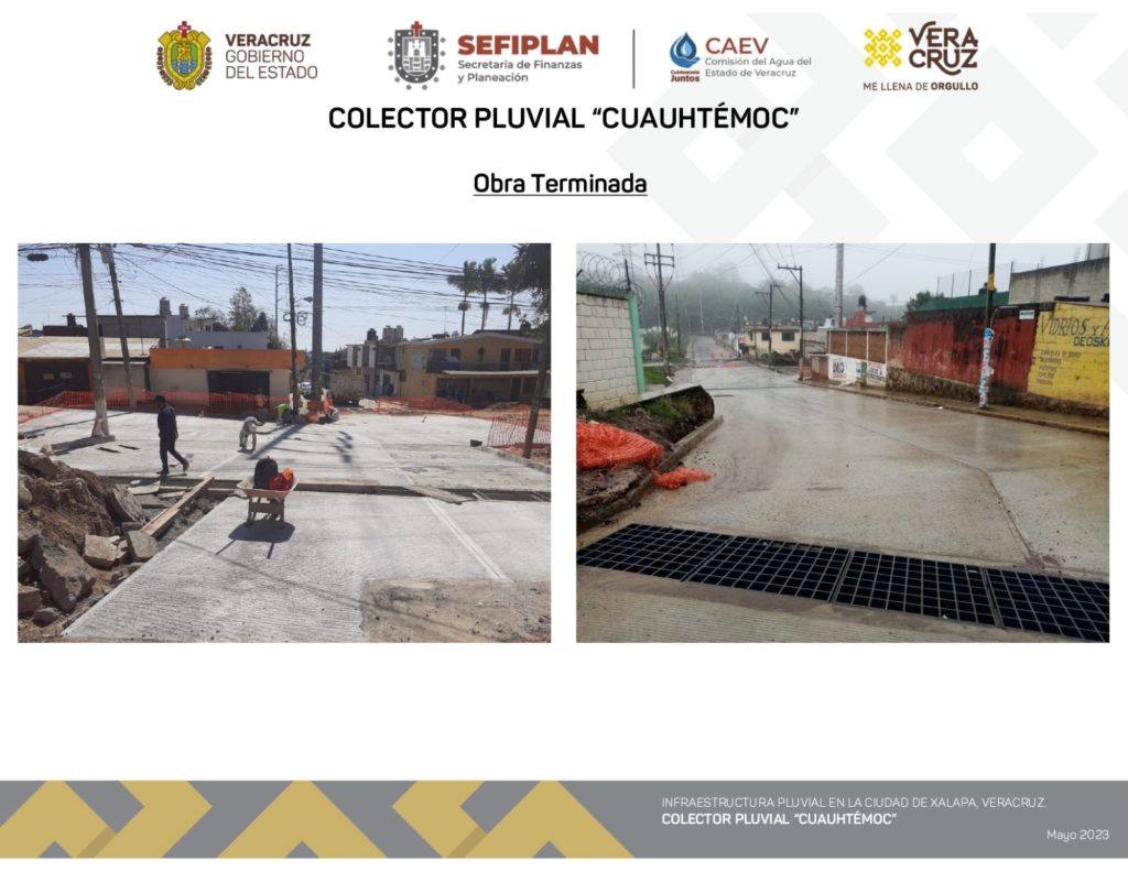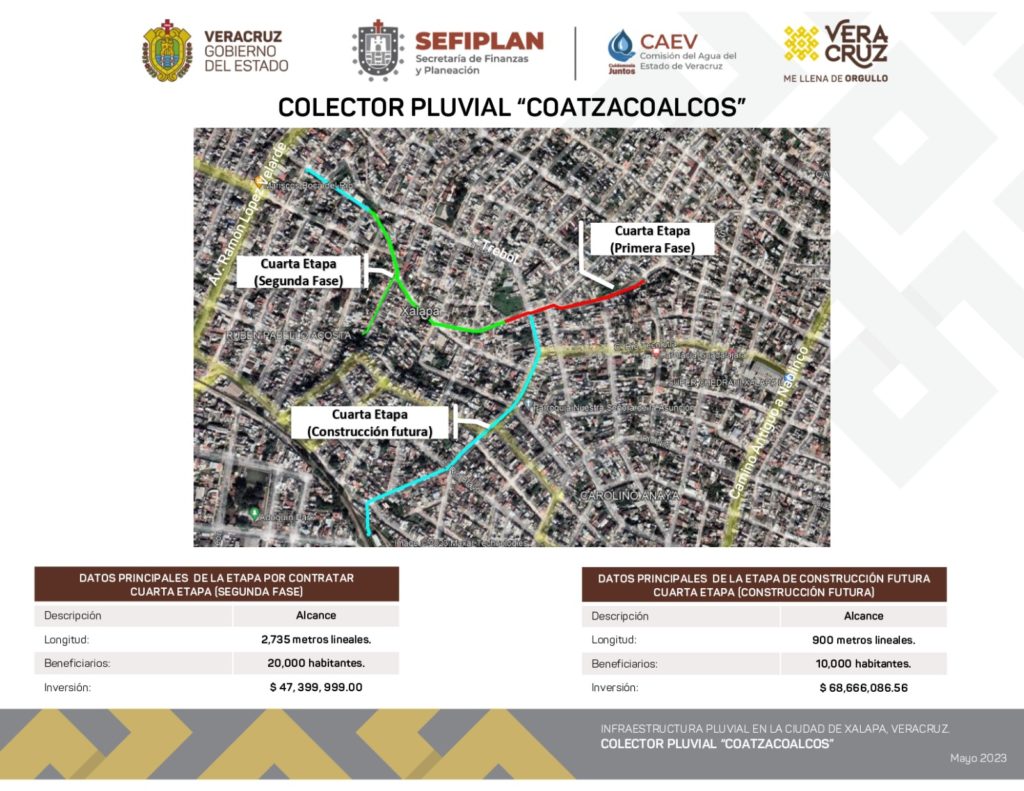 Xalapa, Ver.- Con la construcción del colector pluvial Coatzacoalcos en su cuarta etapa, la Comisión del Agua del Estado de Veracruz (CAEV) cierra un paquete de magnas obras que brindarán mayor comodidad, confianza y seguridad a los xalapeños, solucionando de manera integral el problema histórico de inundaciones en la capital.