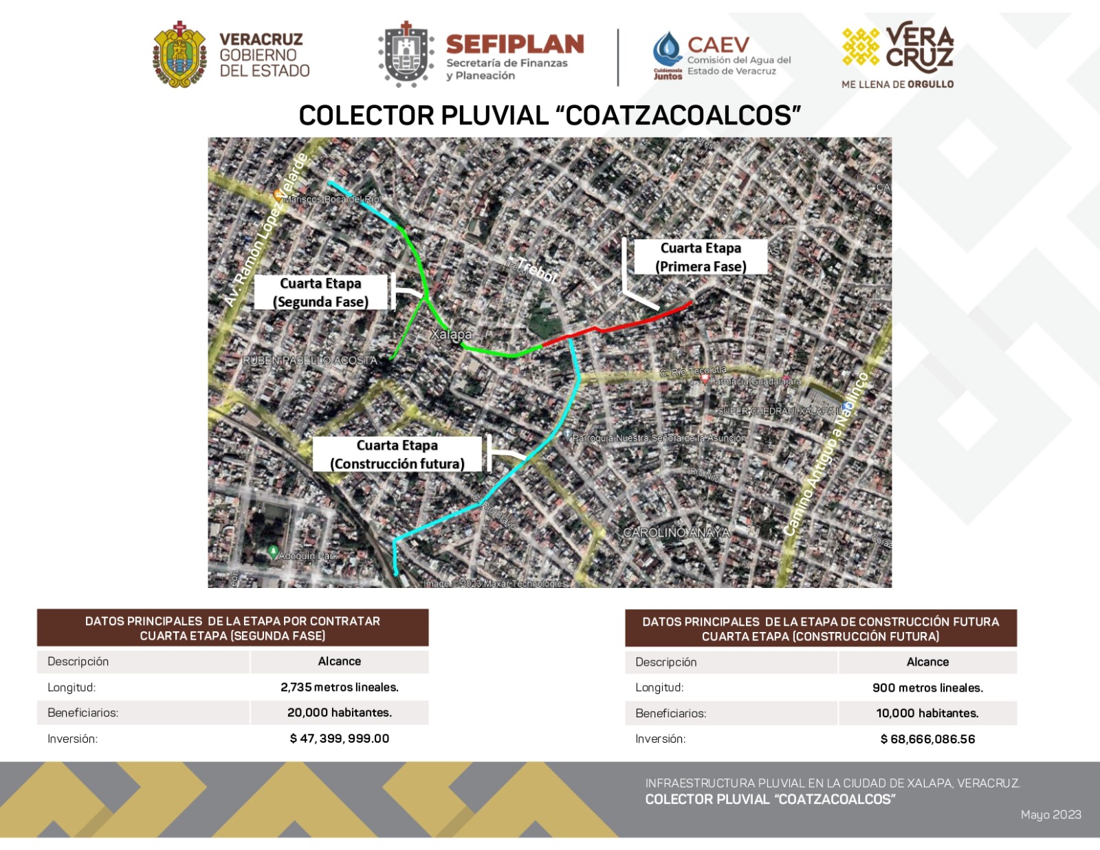“Las acciones incluyen cambio total de infraestructura, cajones, tomas domiciliarias, drenajes con capacidad de desfogue, excavaciones de más de seis metros, guarniciones y banquetas”, detalló el titular de la CAEV.