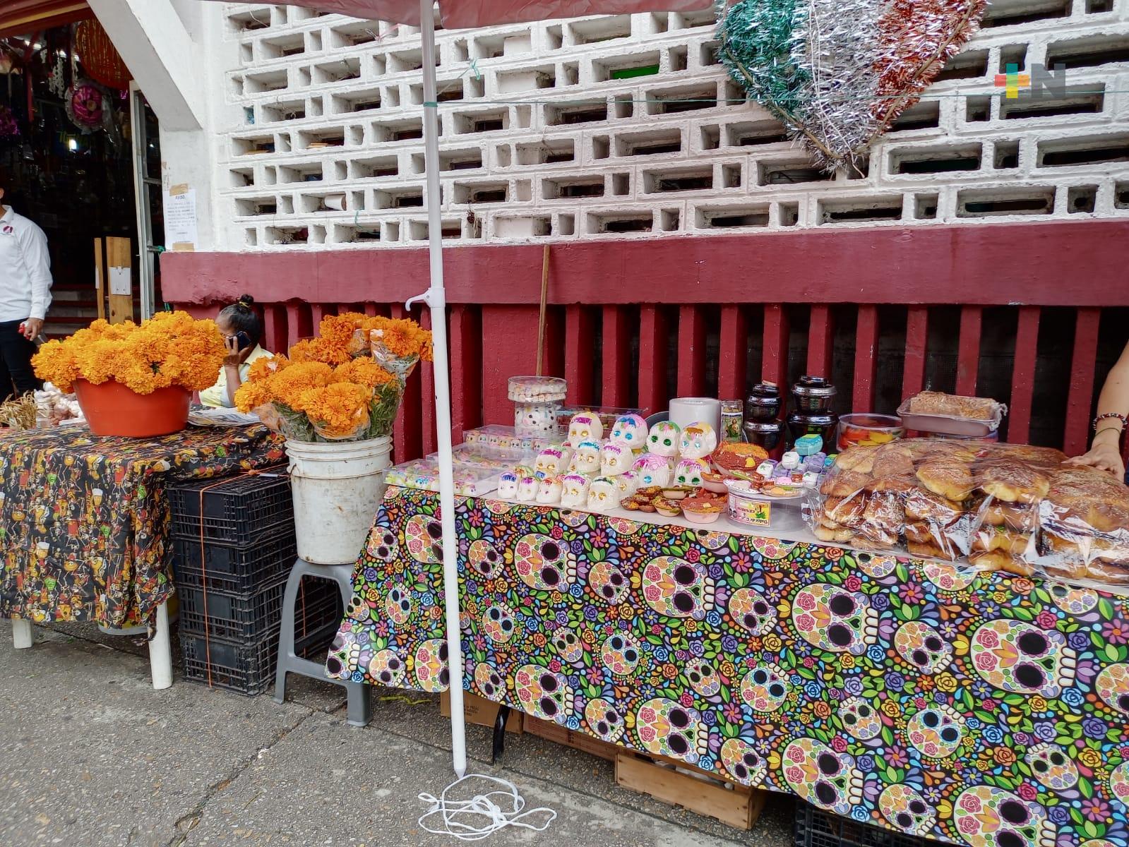 Coatzacoalcos, Ver.- Más de 10 locatarios del Mercado Coatzacoalcos estarán instalados en las banquetas aledañas a este centro de abastos con venta de productos alusivos a la celebración de Día de Muertos.