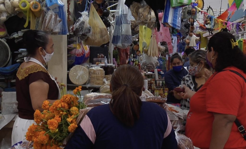 “La gente esta acudiendo al mercado Morelos a hacer sus compras para poner los altares tradicionales en las casas, entonces, el mercado Morelos el día de ayer pues ya tuvimos que cerrar a las 6:30, 7 de la noche porque había gran afluencia de clientes, gracias a Dios después de esta pandemia que había estado muy tranquilas las ventas, muy bajas, los compañeros vendieron bien”.