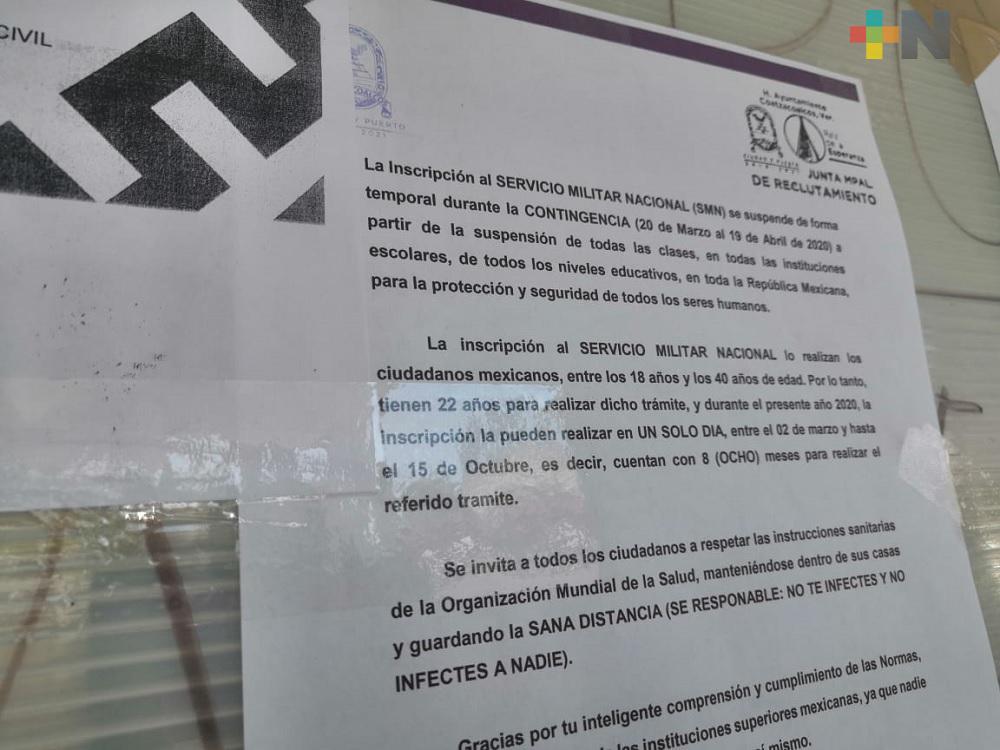Coatzacoalcos, Ver.- Por motivos de prevención del contagio del Covid-19, fueron suspendidos los trámites de la cartilla del Servicio Militar Nacional en la Junta de Reclutamiento de Coatzacoalcos.