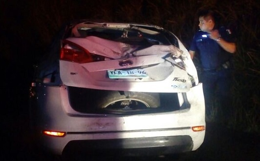 Rubén Enrique Valdés de 27 años de edad conducía a exceso de velocidad cuando transitaba por la arteria procedente de Xalapa con destino a la localidad de Dos Ríos, cuando perdió el control y provocó la volcadura de un auto fiesta, color blanco con placas YLA 1826