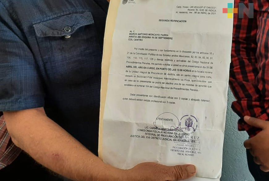 Veracruz, Ver.- Marco Antonio Moncayo Parra, presidente de una organización que lleva por nombre Movimiento Renovador Democrático, informó que fue citado por la Fiscalía General del Estado (FGE) para que responda por una denuncia penal en su contra.