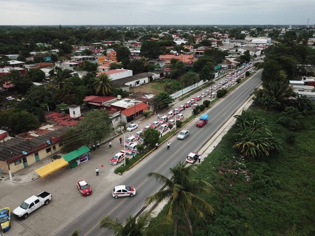 Cosamaloapan, Ver.- Siguiendo instrucciones del gobernador Cuitláhuac García Jiménez, fundamentadas en lineamientos y estrategias del Sector Salud frente a la pandemia de Covid-19, la dirección de Transporte Público, delegación en Cosamaloapan, a cargo de Guillermo Reyes López, organizó la sanitización de 450 taxis que operan en municipios de la Cuenca del Papaloapan.