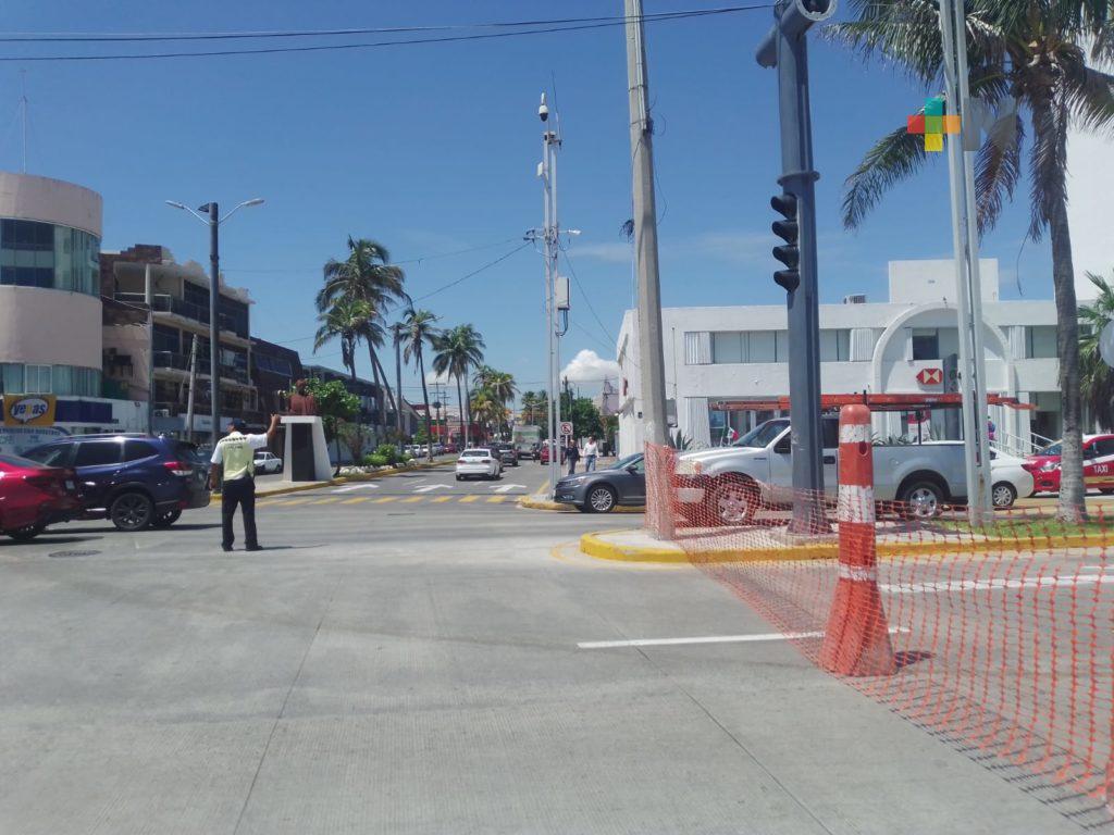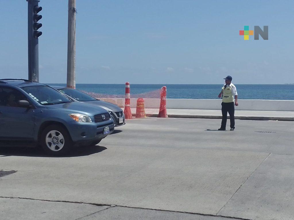 Desde la avenida Simón Bolívar se colocaron mallas plásticas para evitar el paso de los vehículos del lado del mar, mientras elementos de Tránsito municipal están redireccionando el tráfico.