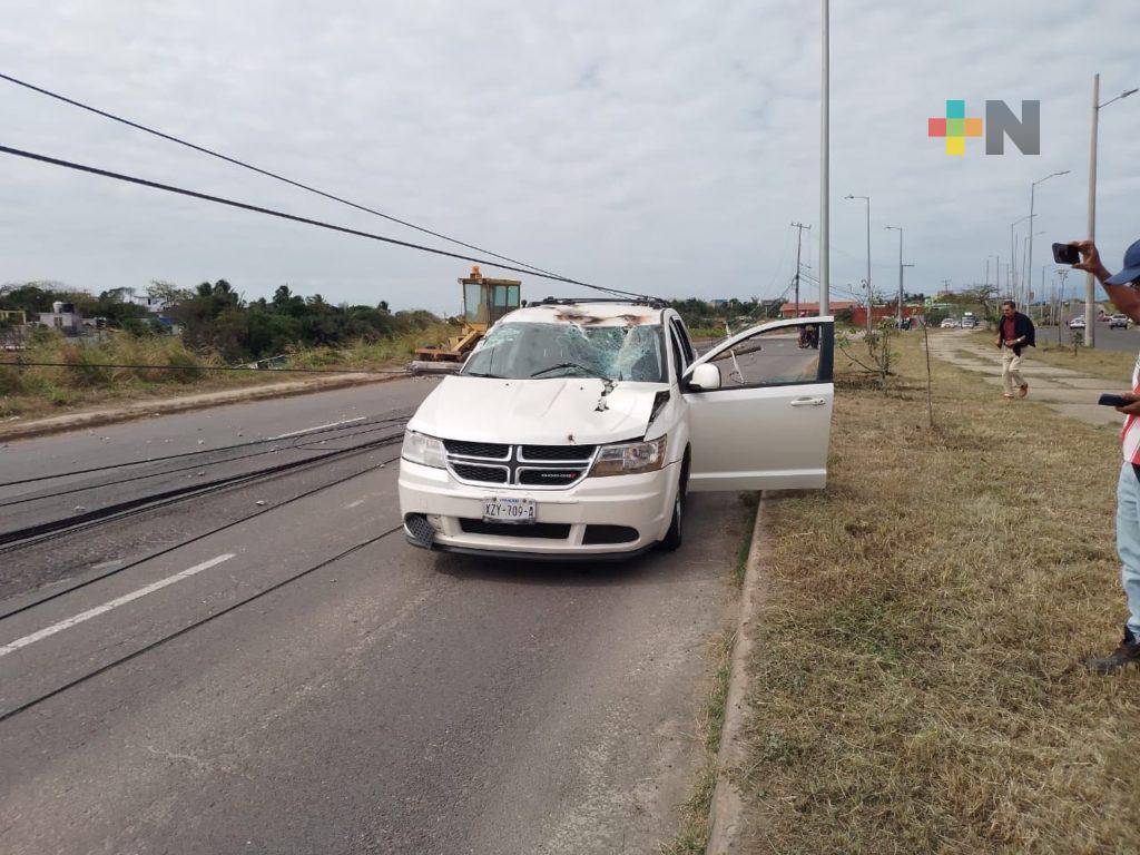 Poste de energía cae sobre dos camionetas; deja siete lesionados