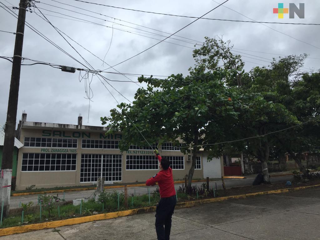 Postes, árboles y caídos por efectos del FF 17 en Coatzacoalcos