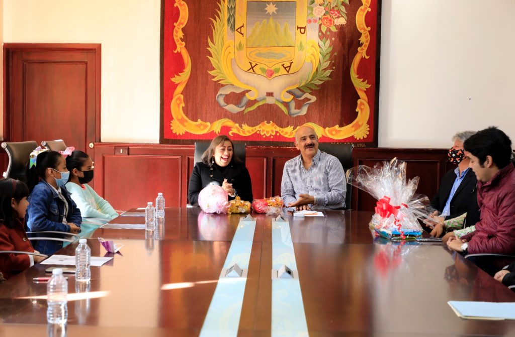 Xalapa, Ver.- La importancia de fomentar la expresión escrita de las niñas y niños radica en que las ideas y sentimientos que expresan, llenan a los adultos de reflexiones para mejorar la vida dentro de nuestra sociedad, manifestó el presidente municipal Ricardo Ahued Bardahuil durante la premiación a las ganadoras del primer concurso de cuentos y fábulas navideñas infantiles “Érase una vez…en Navidad”.