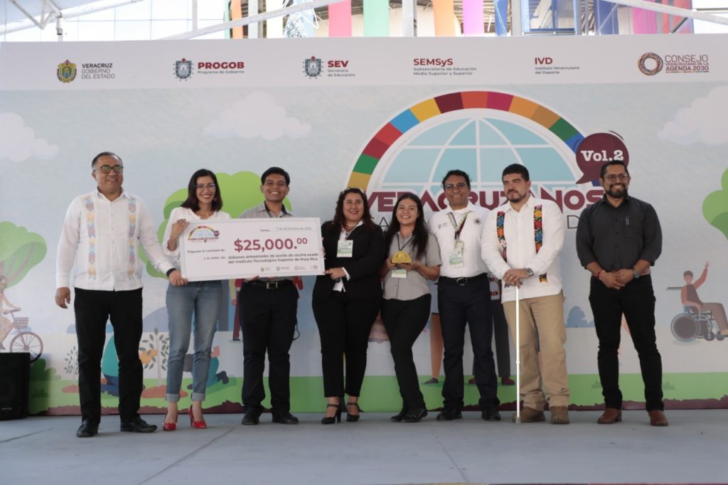 Poza Rica, Ver.- Tras la ejecución de proyectos sostenibles que fortalecen el desarrollo regional en materia ambiental, económica y social, ocho estudiantes de los niveles medio superior y superior obtuvieron el premio Veracruzanos Salvando al Mundo 2022, iniciativa de la Oficina de Programa de Gobierno (PROGOB).
