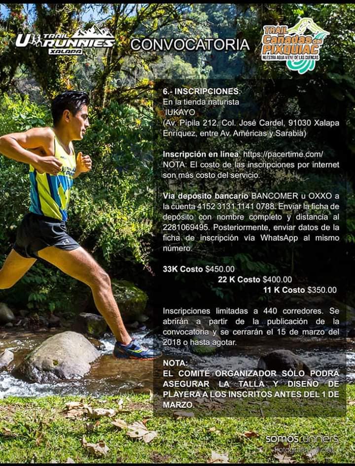 Inscripciones y mayores informes en www.pacertime.com o en la fan page U_Trail_Runnies, evento limitado a 440 corredores.