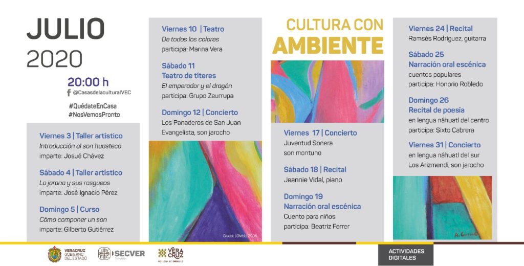 No pierdas la oportunidad de disfrutar y aprender sobre la cultura de nuestro estado este fin de semana. Viernes, sábado y domingo serán de Cultura con Ambiente en punto de las 20:00 horas, a través de la página de Facebook @CasasdelaCulturaIVEC.