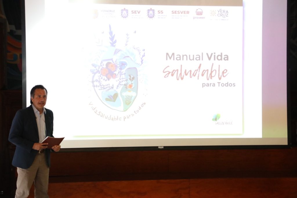 Xalapa, Ver.- El manual “Vida Saludable para Todos” es una estrategia integral enfocada en modificar hábitos alimenticios y de higiene, con el propósito de mejorar y fortalecer la salud de la niñez en la etapa escolar, señaló el gobernador Cuitláhuac García Jiménez durante la presentación de este material.