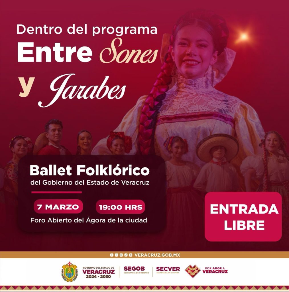 El viernes 7 a las 19:00 horas se presentará el Ballet Folklórico del Gobierno del Estado con el espectáculo Sones y Jarabes en el foro abierto del Ágora de la Ciudad.