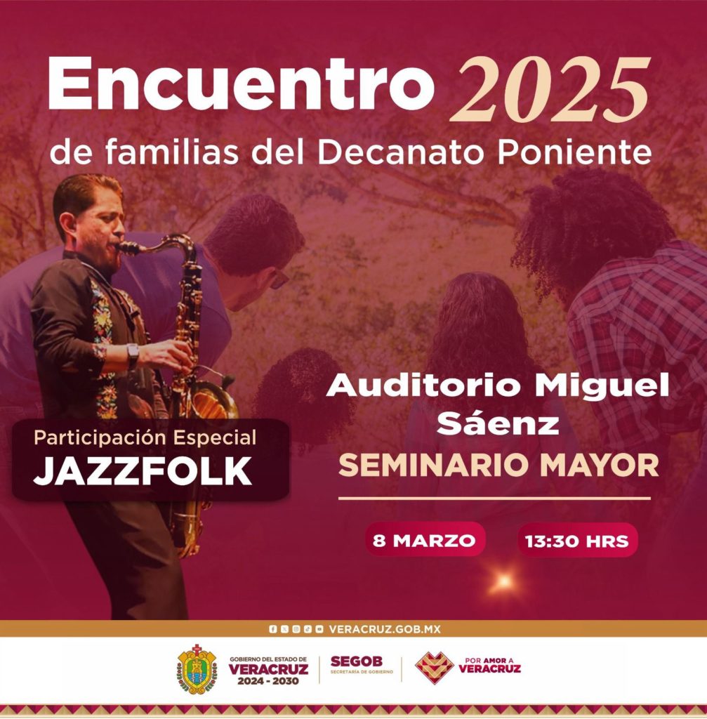 El sábado 8 a las 13:30 horas, el grupo Jazz Folk participará en el Encuentro 2025 de las Familias del Decanato Poniente, en el Auditorio Miguel Sáenz del Seminario Mayor.