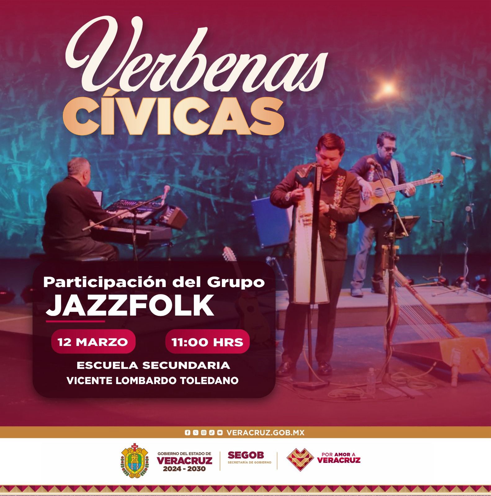 Comprometidos con la difusión de los valores cívicos y culturales, los días 4, 12, 18 y 25 se llevarán a cabo Verbenas Cívicas con presentaciones didácticas en diversas escuelas de Xalapa. Las instituciones educativas interesadas pueden solicitar este servicio directamente a la Coordinación.