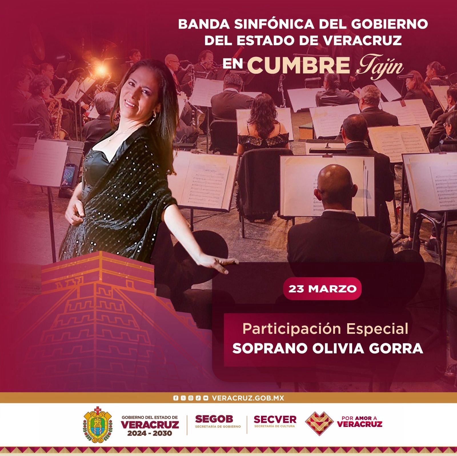 El sábado 23, la Banda Sinfónica del Gobierno del Estado se presentará en el emblemático Festival Cumbre Tajín, con la participación especial de la soprano Olivia Gorra.