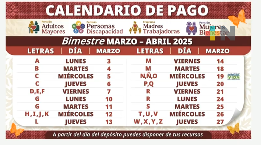 Resaltó que, en Durango y Veracruz, el pago de las pensiones será doble debido al proceso electoral en esas entidades.