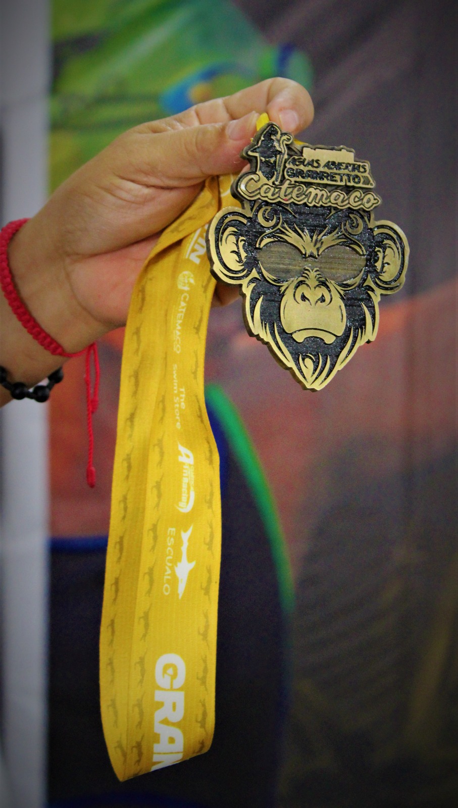 El atractivo de esta quinta edición de Gran Retto Catemaco 2023, es su playera y su medalla, la cual tiene mucho significado alusivo a esta zona, al respecto el diseñador Randy Pantoja, explicó a detalle “el negro que refleja el misterio y la magia que envuelve a Catemaco, incorporamos el Brujo que es elemento 100% característico y para esta edición, mostramos el Mono que es típico en la región, se implementó la vegetación de la zona y eso es lo que plasmamos en esta playera y medallas”.
