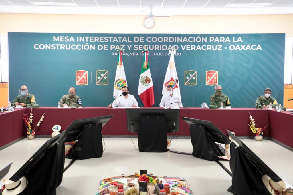 Xalapa, Ver.- El gobernador Cuitláhuac García Jiménez y su homólogo de Oaxaca, Alejandro Murat Hinojosa presentaron los resultados de la Mesa Interestatal de Coordinación para la Construcción de la Paz y Seguridad, a cinco meses de haber iniciado operaciones en la zona limítrofe entre ambas entidades, alineados a la estrategia del presidente Andrés Manuel López Obrador.
