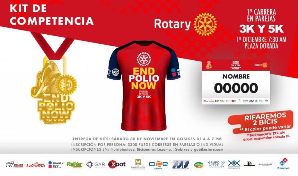 Boca del Río, Ver.– Este domingo 1 de diciembre a las 07:30 horas en Plaza Dorada se desarrollará la Carrera “End Polio Now”, evento pedestre organizado por el Club Rotario Boca del Río Costa de Oro.