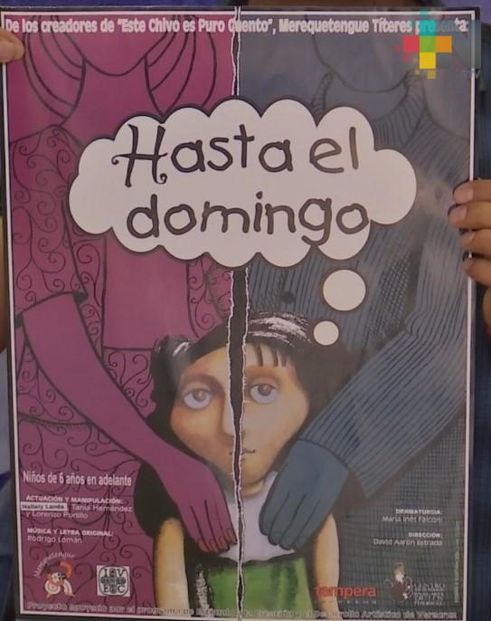 Xalapa, Ver.- El grupo Merequetengue “Teatro Rincón de los Títeres”, presentará la producción escénica “Hasta el domingo”, una obra que aborda el tema de “divorcio”.