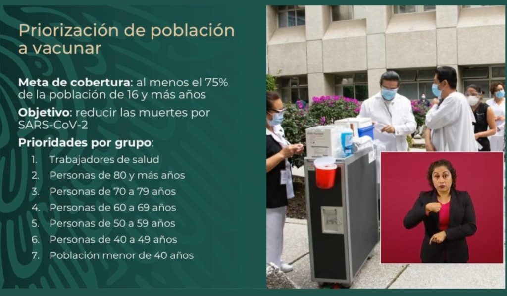 Ciudad de México.- El gobierno federal presentó la Política Nacional de Vacunación contra el COVID-19, en la cual se destaca que quienes tendrán prioridad para recibir la vacuna serán personal médico y población de riesgo.
