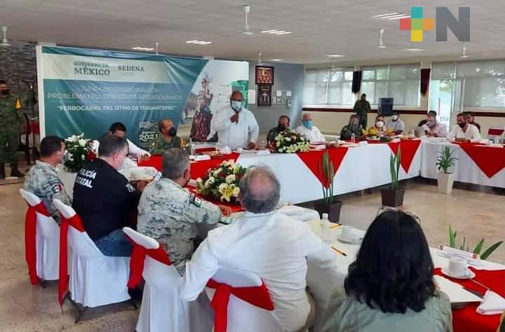Matías Romero, Oax.- En el 99 Batallón de Infantería de la VIII Región Militar con sede en Matías Romero, Oaxaca, el secretario de Gobierno, Eric Cisneros Burgos en representación del gobernador Cuitláhuac García presidió la segunda reunión interinstitucional del Corredor Interoceánico del Istmo de Tehuantepec.