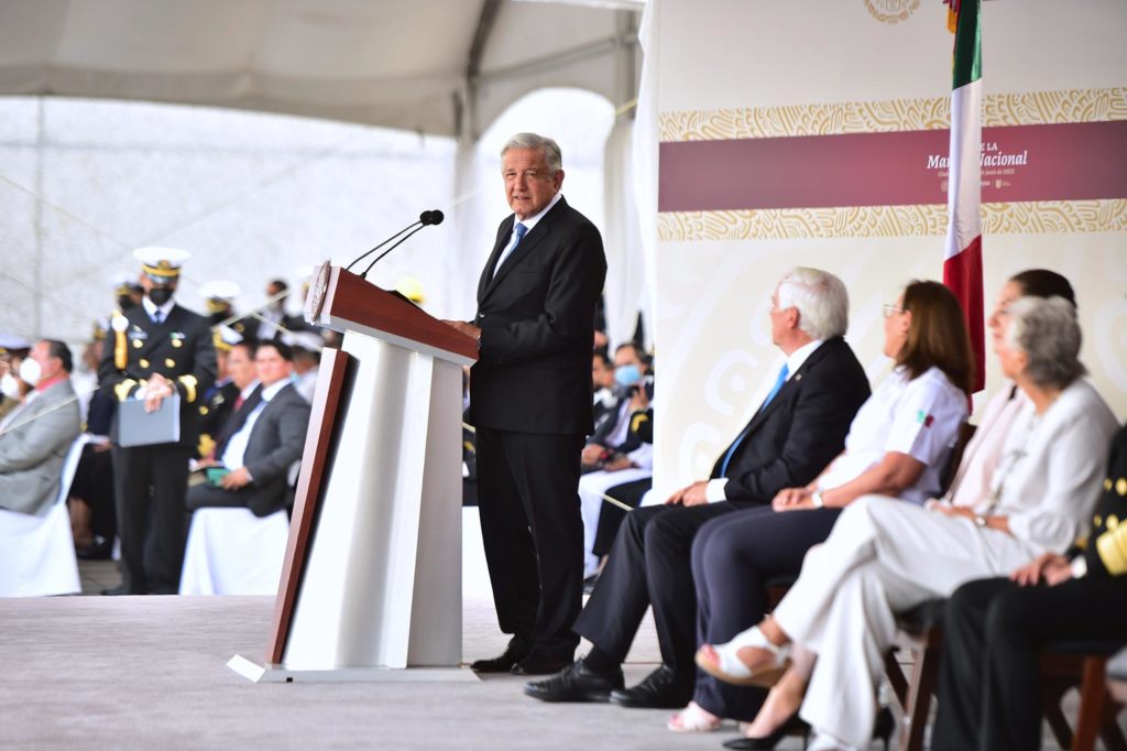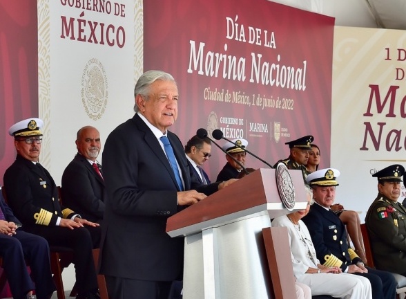 Ciudad de México.- Al conmemorar el octogésimo aniversario del Día de la Marina Nacional, el presidente Andrés Manuel López Obrador destacó que esta institución contribuye al proceso de desarrollo y pacificación del país; además, brinda auxilio a la población en desastres naturales, como el reciente huracán Agatha.