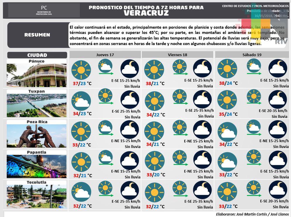 Xalapa, Ver.- El calor continuará en el estado, principalmente en porciones de planicie y costa donde además, las sensaciones térmicas pueden alcanzar o superar los 45 grados, informó la Secretaría de Protección Civil. Por su parte, en las montañas el ambiente será templado.