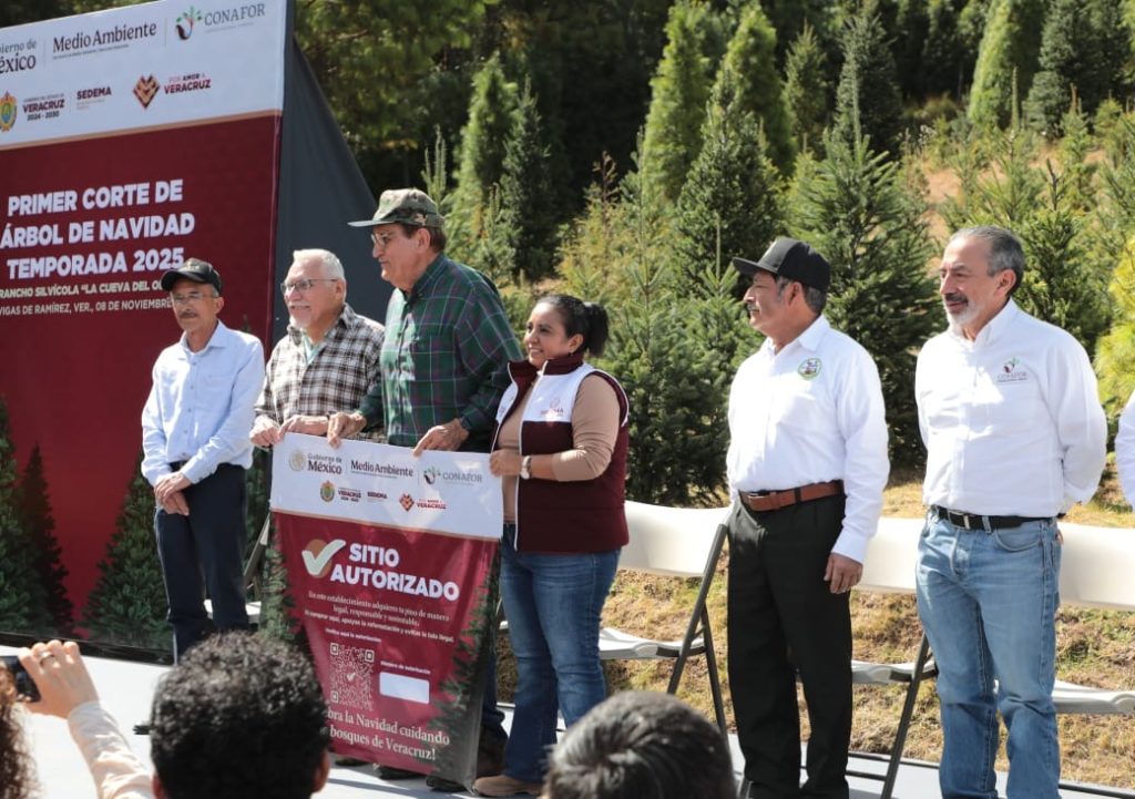 Las Vigas, Ver.-El Gobierno del Estado, en coordinación con productores silvícolas de Las Vigas, realizó el primer corte legal de árbol navideño de la temporada, reafirmando el compromiso con la sustentabilidad, la economía circular y el fortalecimiento del campo veracruzano.