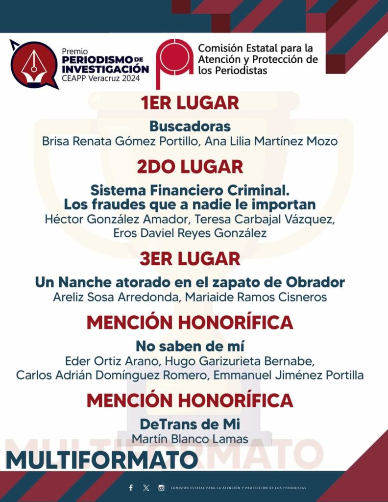 Redacción.- La Comisión Estatal para la Atención y Protección de Periodistas (CEAPP) reveló a los ganadores de la edición 2024 del Premio Periodismo de Investigación.
