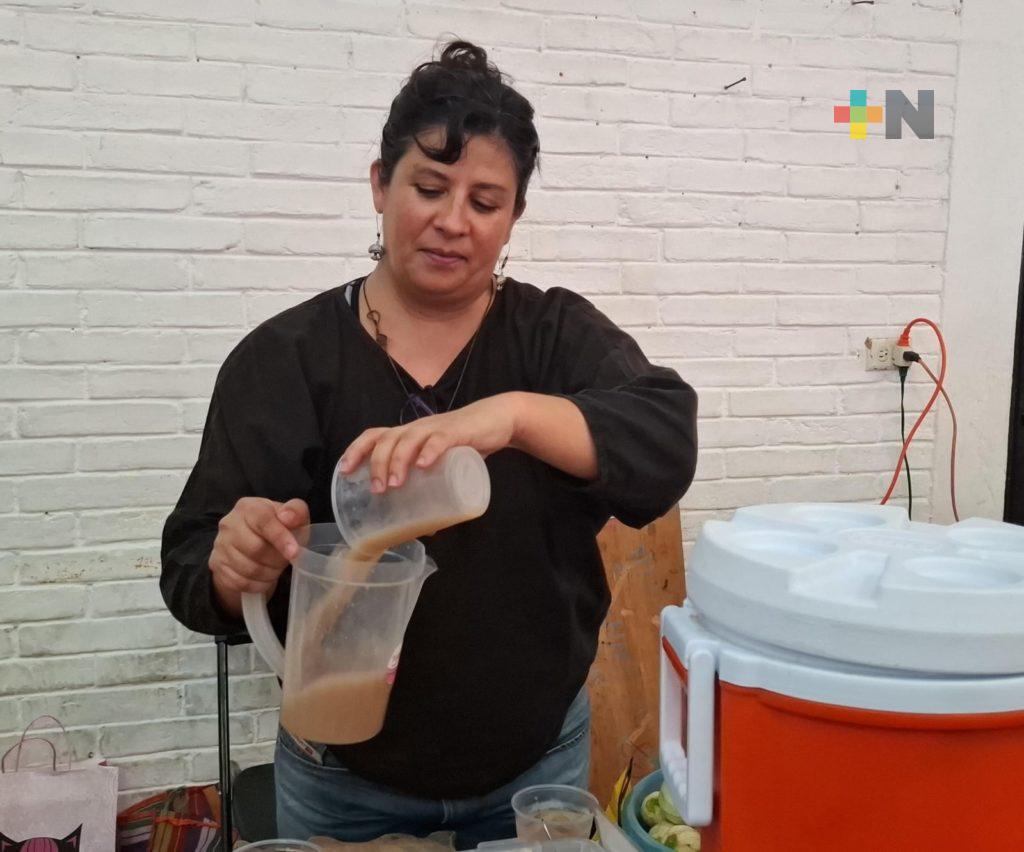“Lo preparo con maíz, masa fermentada por tres o cuatro días, que no le dé tanto el sol y al final lo agrego limón y sal. Es una bebida muy amigable con el estómago porque es un probiótico, también ayuda a la flora intestinal, para el sistema inmune y es como un suerito. Tiene muchas vitaminas, minerales, como también se hace la nixtamalización con la cal viva. Es un maíz de aquí, trato de comprar maíz orgánico”, señaló Ruth Pacheco, productora.