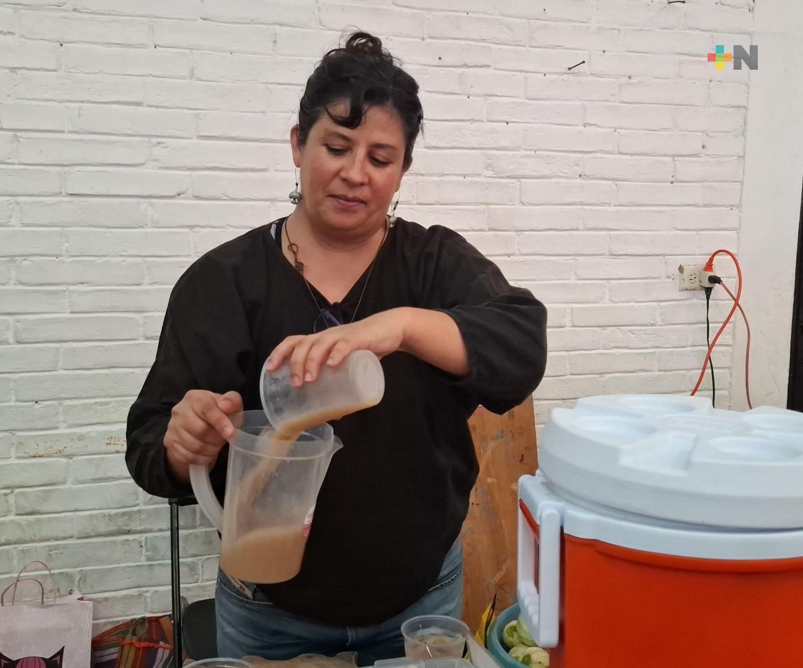 “Lo preparo con maíz, masa fermentada por tres o cuatro días, que no le dé tanto el sol y al final lo agrego limón y sal. Es una bebida muy amigable con el estómago porque es un probiótico, también ayuda a la flora intestinal, para el sistema inmune y es como un suerito. Tiene muchas vitaminas, minerales, como también se hace la nixtamalización con la cal viva. Es un maíz de aquí, trato de comprar maíz orgánico”, señaló Ruth Pacheco, productora.
