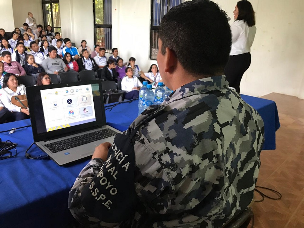 Personal de Policía Estatal recorre instituciones educativas en Coatzacoalcos, promoviendo temas como Líneas de Emergencia, Acoso Escolar, Uso correcto de redes sociales; implementando a su vez dinámicas como teatro Guiñol para preescolar y primaria; asimismo, se imparten pláticas en secundarias, bachilleratos y universidades.