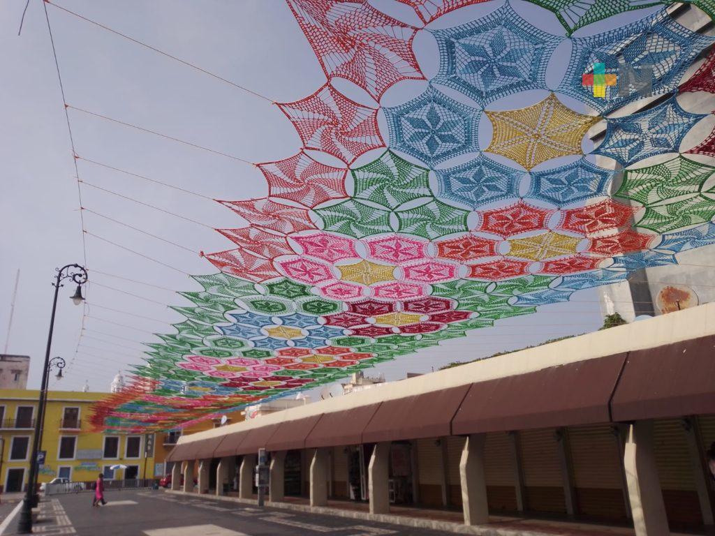 Veracruz, Ver.- Frente al Mercado de Artesanías en la zona del Malecón de Veracruz, fue colocado el tapete aéreo plástico creado por artesanas del municipio de Acultzingo, como un modo de promocionar la riqueza cultural y turística del municipio.