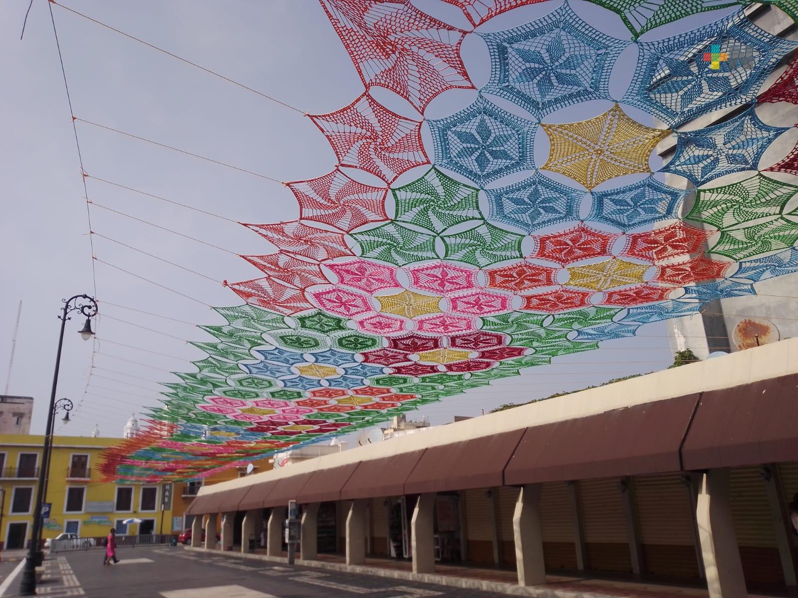 Veracruz, Ver.- Frente al Mercado de Artesanías en la zona del Malecón de Veracruz, fue colocado el tapete aéreo plástico creado por artesanas del municipio de Acultzingo, como un modo de promocionar la riqueza cultural y turística del municipio.
