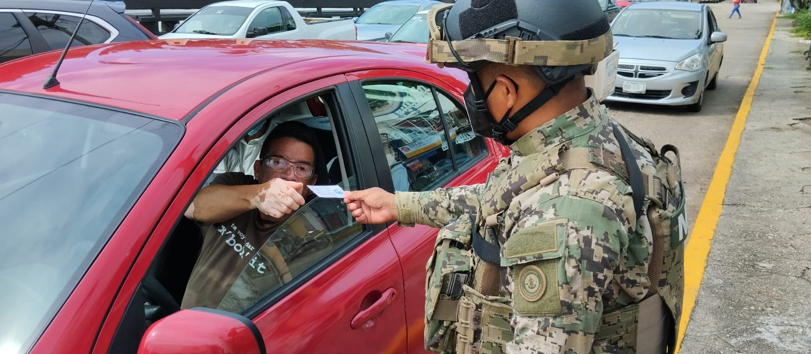 Para dar a conocer esta línea telefónica el personal de la SEMAR repartió volantes a la población en el cruce de las calles Venustiano Carranza e Ignacio Zaragoza.