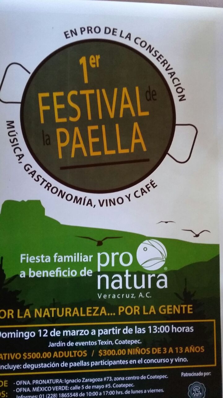Xalapa, Ver.- Con miras a restablecer áreas verdes de Veracruz, la organización Pronatura organiza su primer festival de la Paella, con la cual pretenden recaudar recursos vía donación.