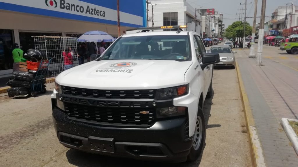 Coatzacoalcos, Ver.- Protección Civil Estatal realiza recorridos en el centro de Coatzacoalcos para exhortar a la población guardar sana distancia y seguir con las medidas de prevención para no contagiarse de COVID-19.
