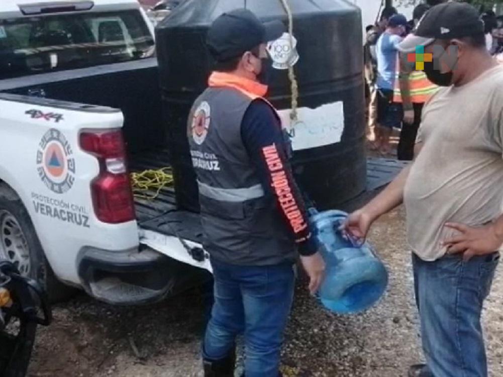 Coatzacoalcos, Ver.- A lo largo de esta semana Protección Civil de Veracruz en la zona sur entregó colchonetas, agua purificada y despensas en los municipios de Jesús Carranza, Texistepec, Hidalgotitlán y Jáltipan que resultaron afectadas por el aumento en el nivel de los ríos de la región.
