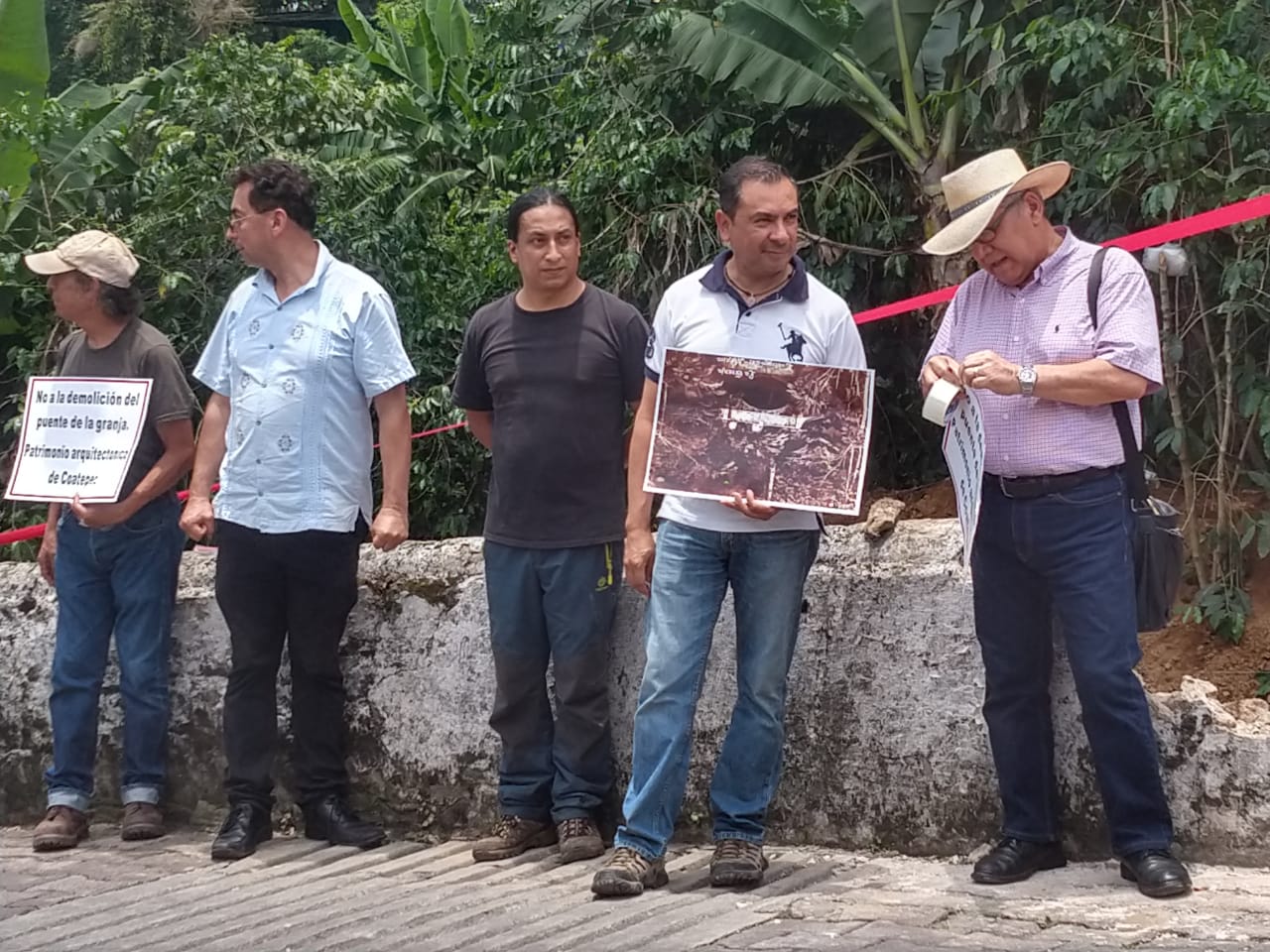 Habitantes de Coatepec se manifestaron este sábado contra los daños al puente La Granja ubicado en la calle 5 de Mayo. Aseguran que se trata de un monumento histórico con más de 150 años de antigüedad.