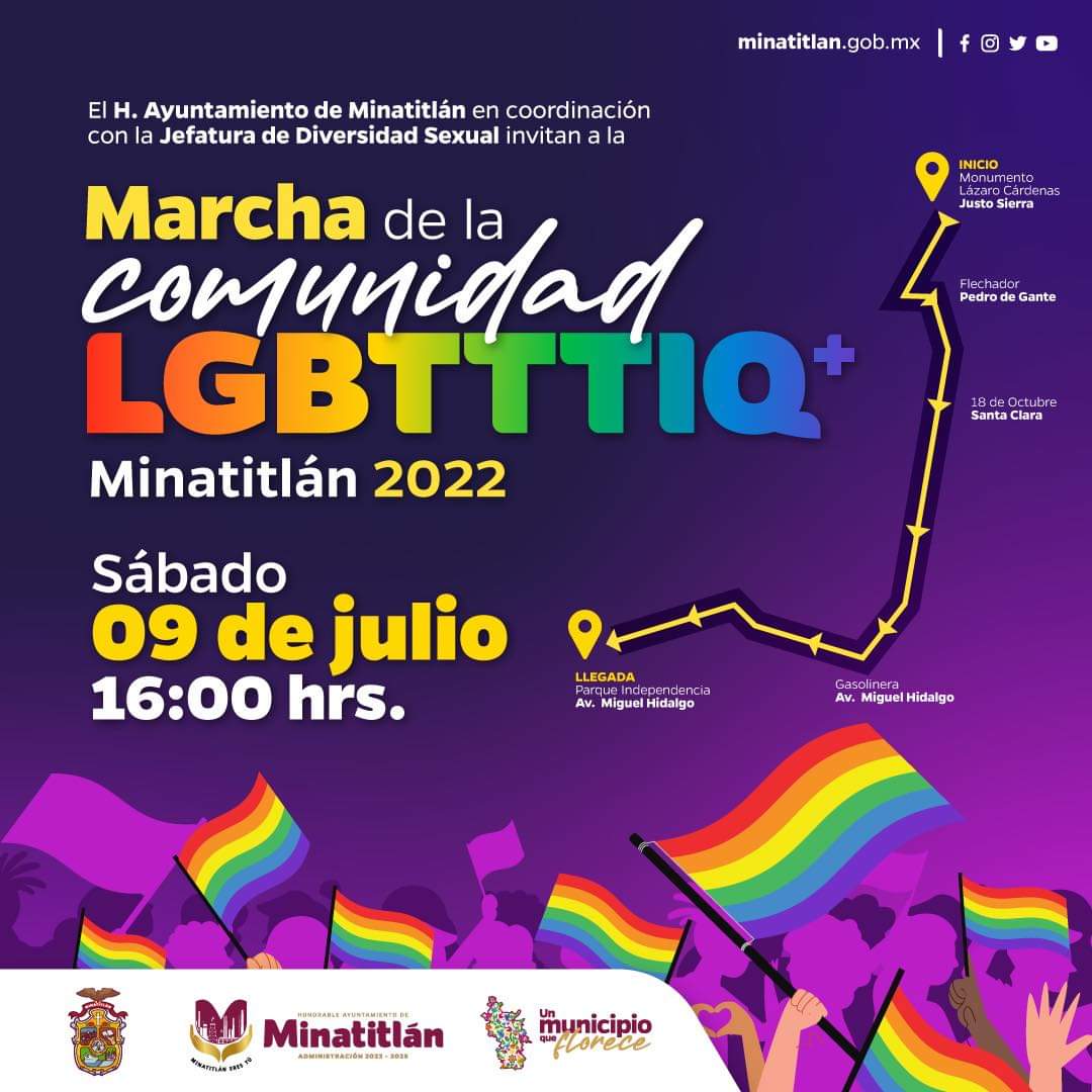 Coatzacoalcos, Ver.- El próximo sábado 9 de julio se realizará un marcha de la comunidad LGBTTTIQ+ en el municipio de Minatitlán.