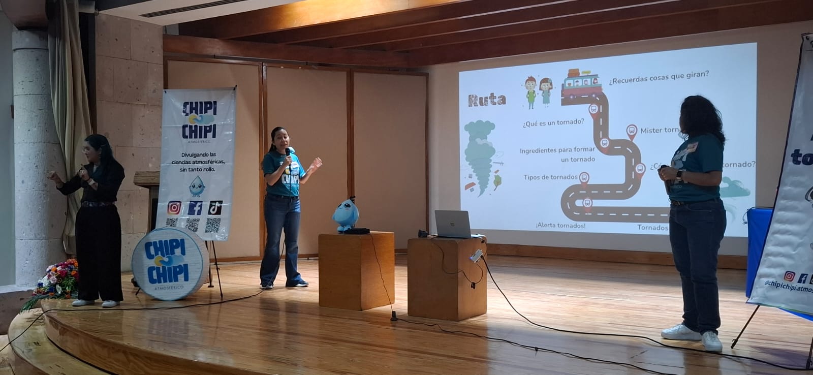 Para saber más sobre estas columnas de aire que se extienden y elevan desde una superficie, ya sea tierra o agua, hasta una nube, profesionales de la licenciatura en Ciencias Atmosféricas de la Universidad Veracruzana que integran el colectivo Chipi Chipi Atmosférico explicaron, apoyados de actividades lúdicas, las causas y características de los tornados, dentro de las actividades del programa Sábados en la ciencia.