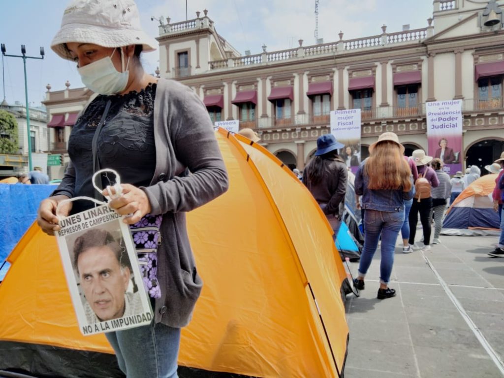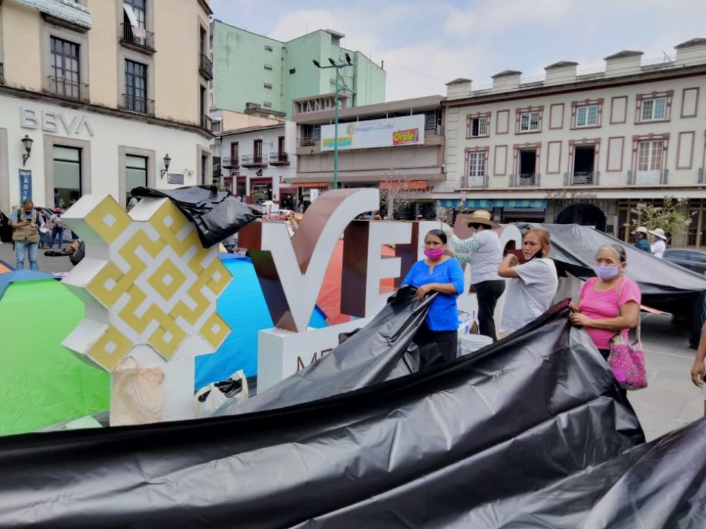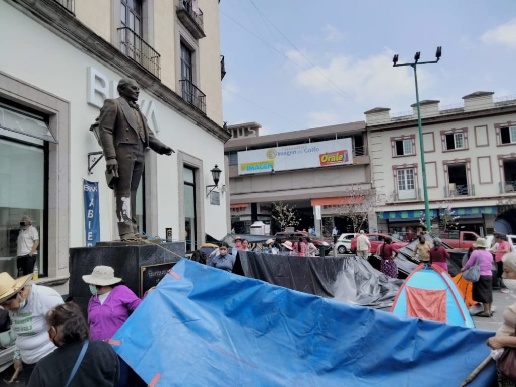 Xalapa, Ver.- Luego de instalar un campamento en la Plaza Sebastián Lerdo de Tejada, el dirigente de la agrupación Movimiento de los 400 Pueblos,