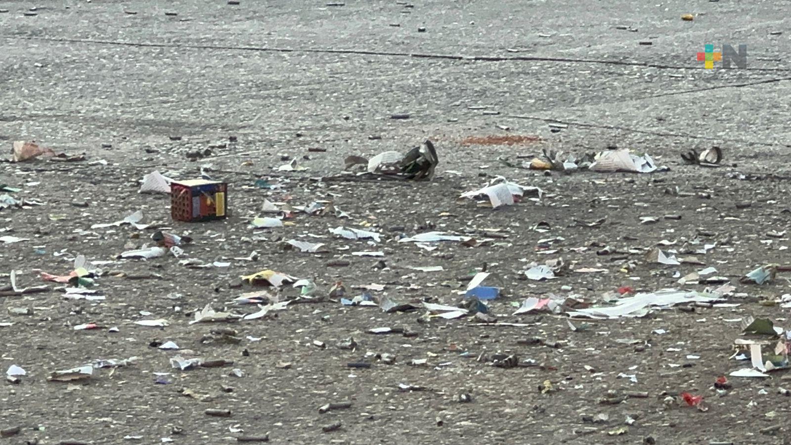 Coatzacoalcos, Ver.- Diferentes puntos de Coatzacoalcos quedaron llenos de basura consecuencia de la quema de cuetes y el tradicional viejo para despedir el 2023.