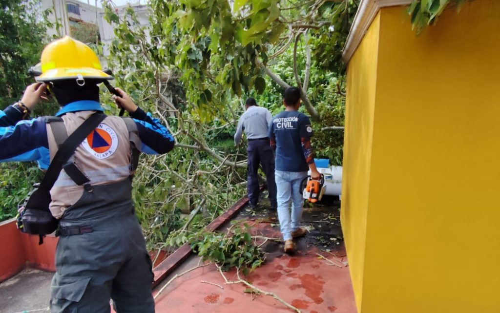 Elementos de la Dirección de Protección Civil municipal atendieron otro reporte en la colonia Lomas del Sumidero, donde otro árbol cayó sobre el techo de una vivienda y alcanzó la tubería de gas, sin que se registraran mayores afectaciones.