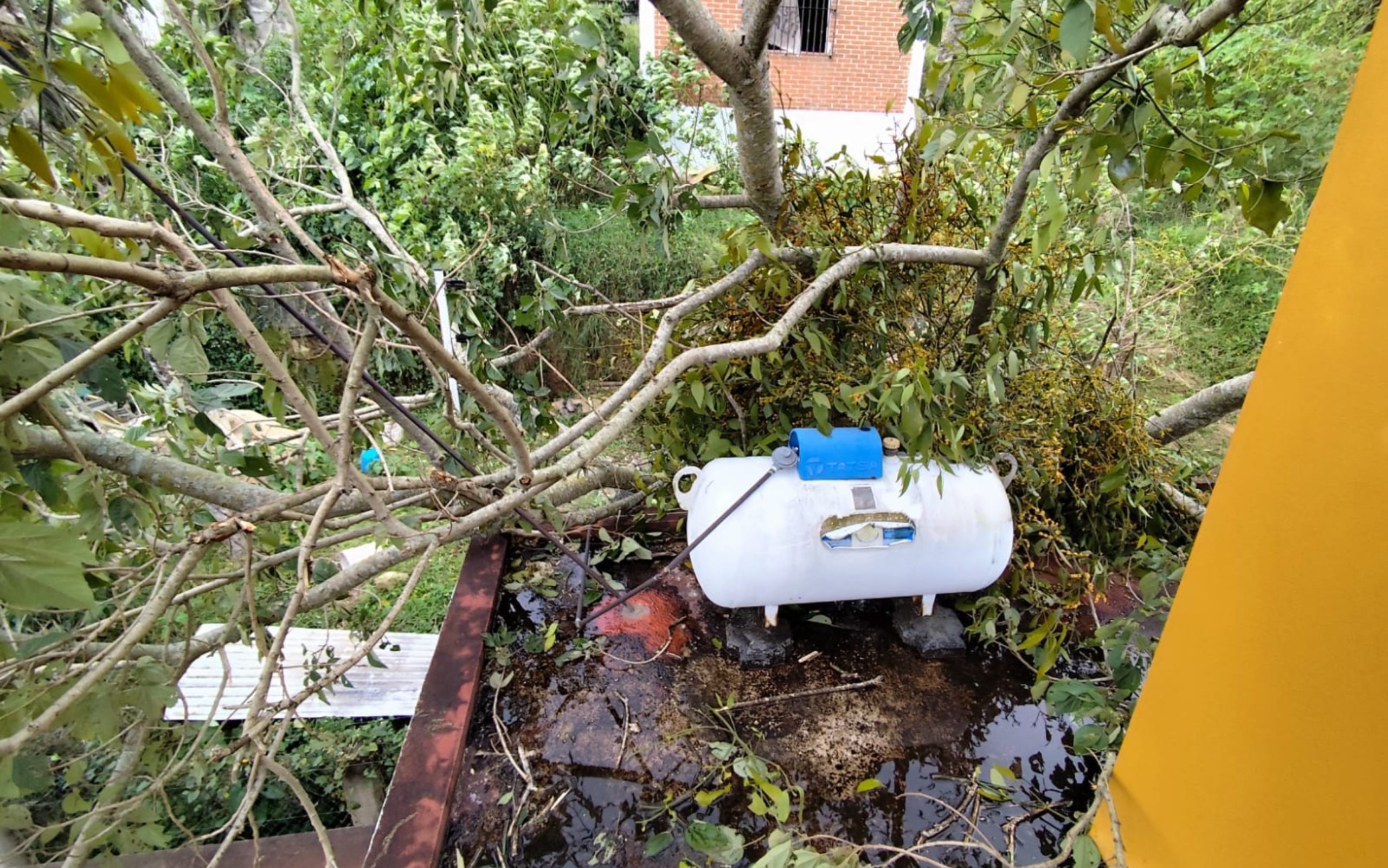 “Oí un trueno horrible, dije ya se estrelló un árbol en mi casa. Que prendo las luces y que veo un árbol sobre la casa. Rompió todo, el castillo, la protección, el alero. Está podrido por dentro, las hormigas se comen la raíz, los otros que están de aquél lado están igual”.