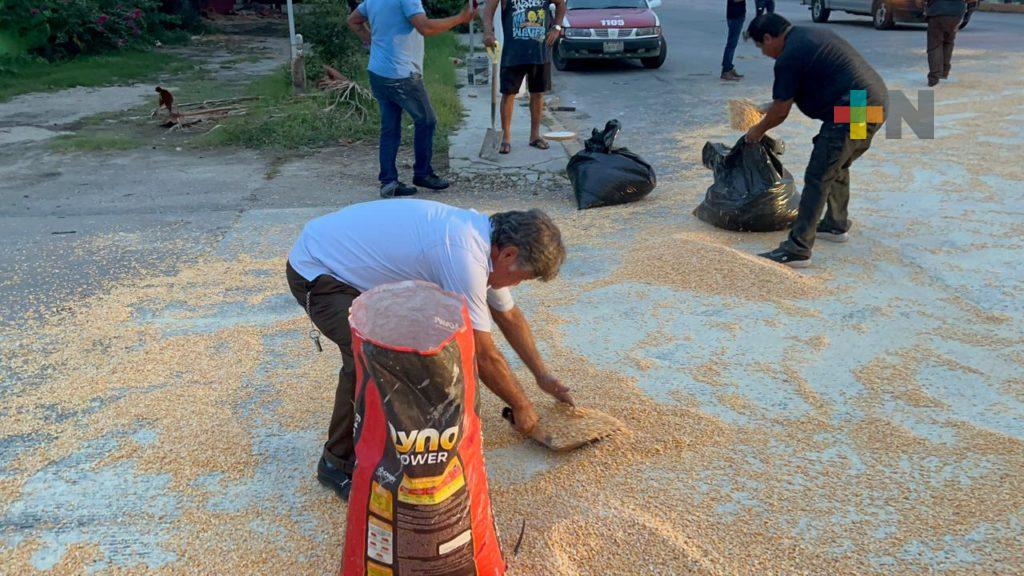 Al lugar llegaron vecinos de la zona con palas, cubetas, costales, carretillas y cualquier recipiente donde pudieran llevarse el maíz.