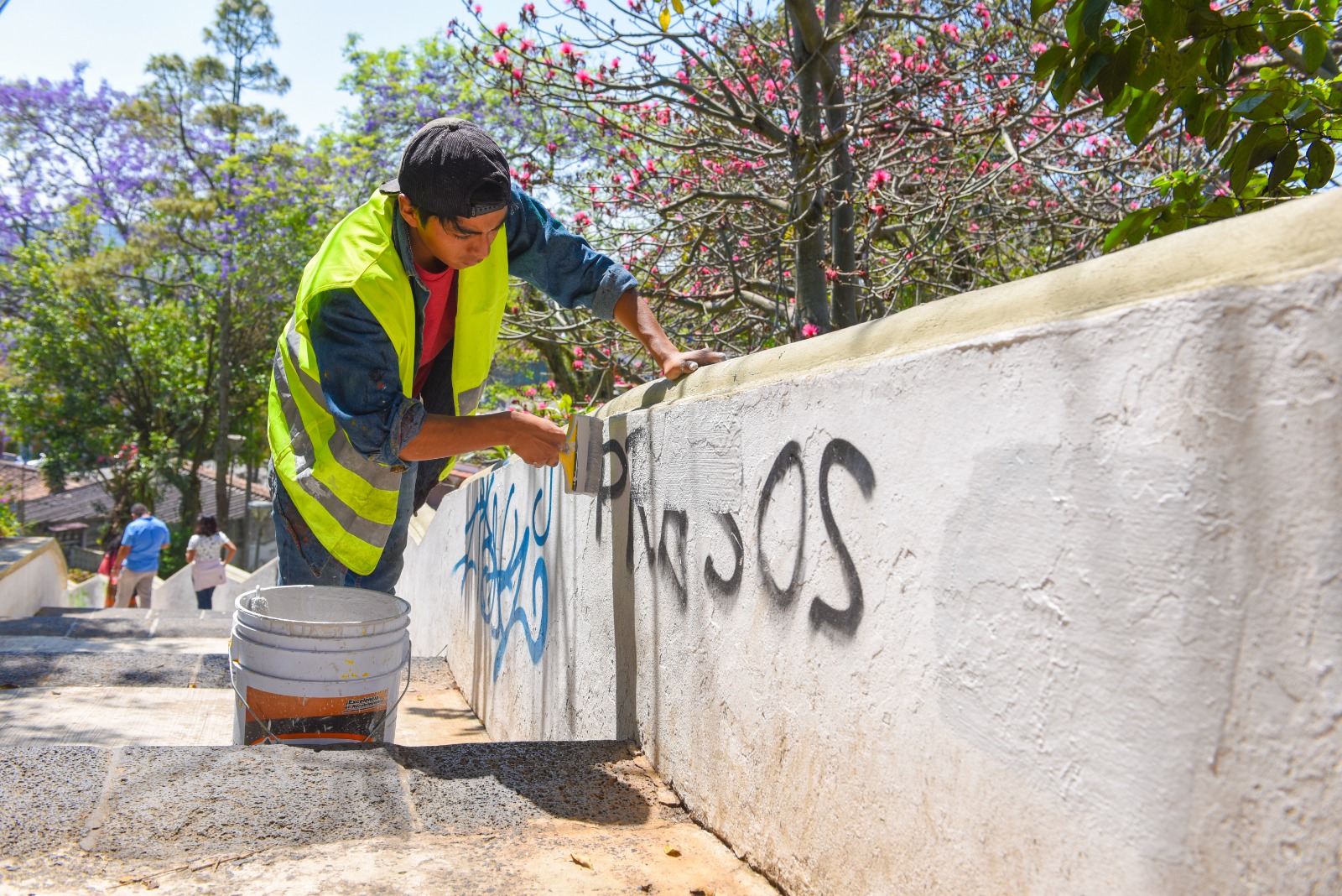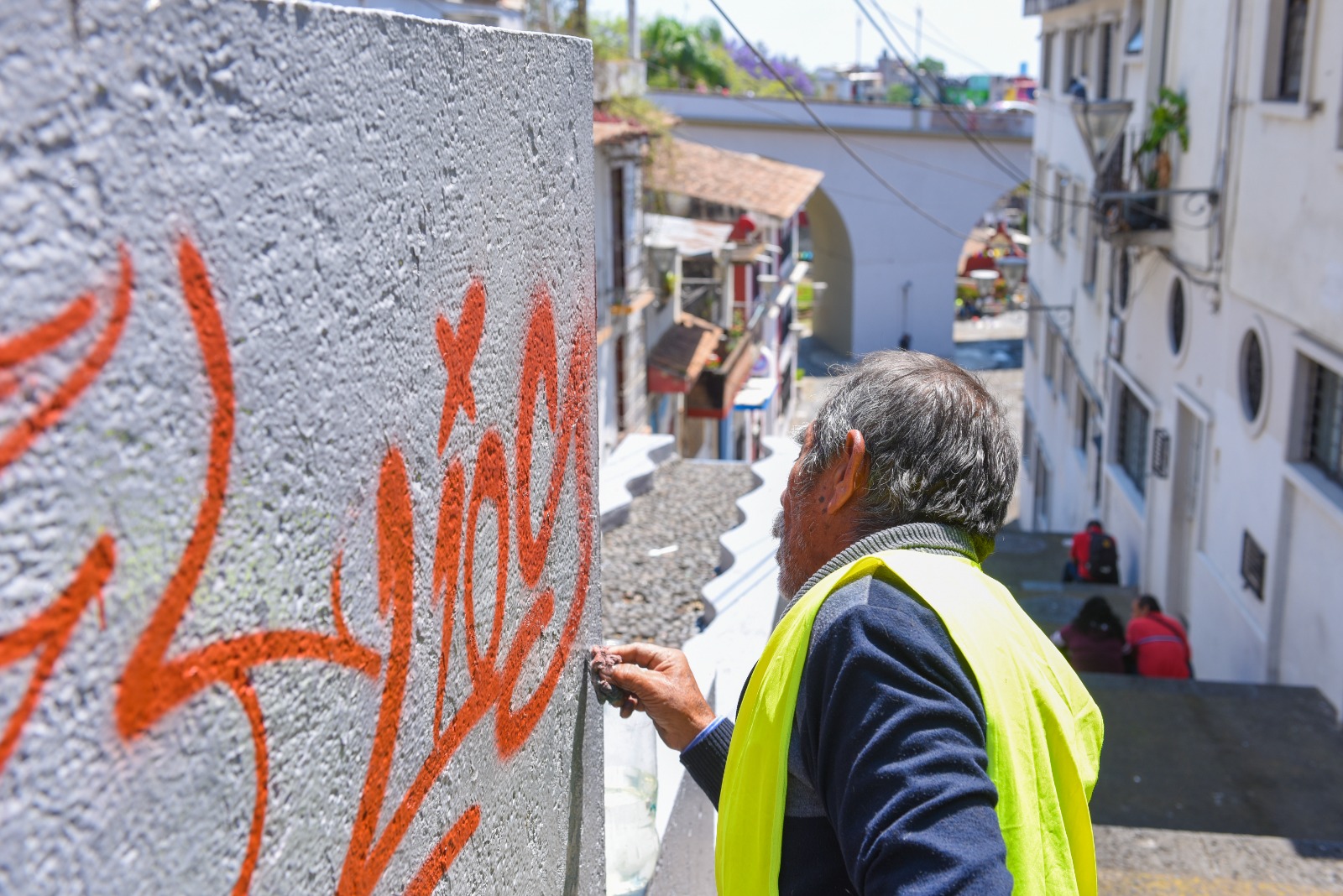 Xalapa, Ver.- Para mejorar la imagen urbana en el barrio de Xallitic y recuperar un espacio histórico y patrimonio de la ciudad como éste, personal del Ayuntamiento realizó trabajos de aplicación de pintura y eliminación de pintas urbanas en el sitio público.