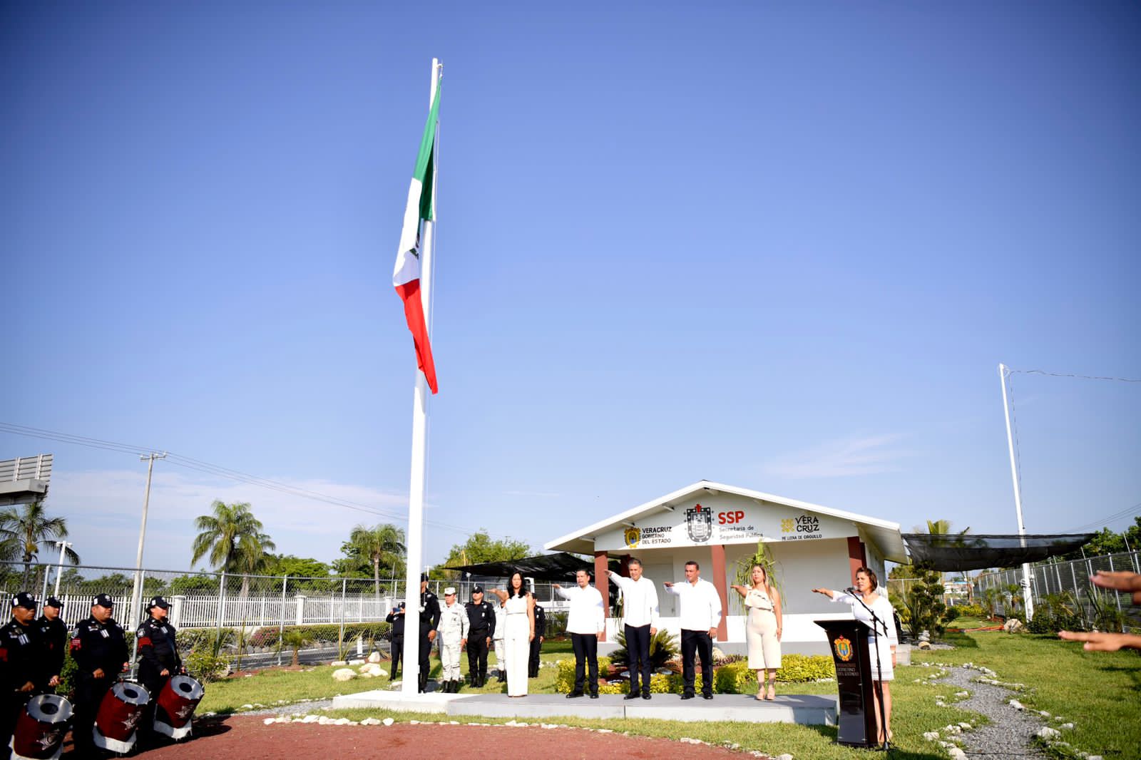 Xalapa, Ver.- «Esta mañana, el secretario de Turismo Iván Martínez Olvera, encabezó los honores a la bandera en instalaciones del módulo de la Secretaría de Seguridad Pública ubicado en la localidad Tamarindo del municipio de Puente Nacional, donde se fortalecen las estrategias de seguridad con acciones de vigilancia, prevención del delito, mayor control vehicular en la carretera Xalapa-Veracruz y detección de vehículos robados», informó el secretario de Gobierno, Eric Cisneros Burgos a través de sus redes sociales.